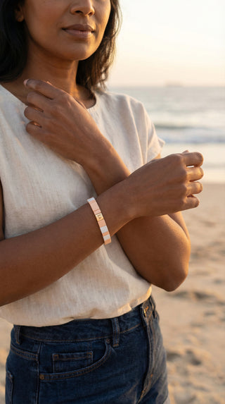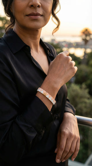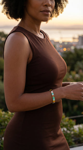 Corona Sunsets Bracelet is stunning on its own or a beautiful addition to a full stack bracelets.