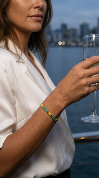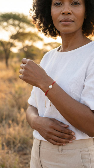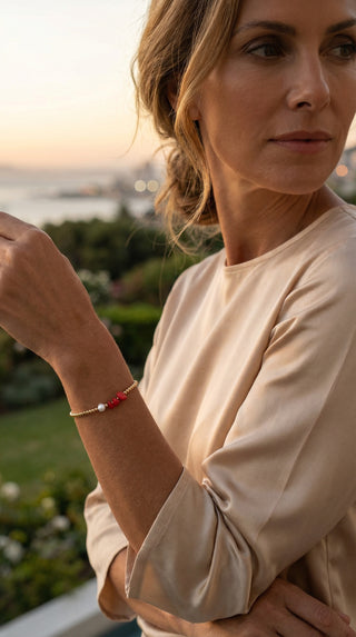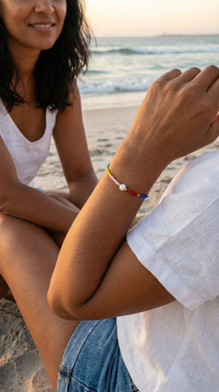 Pleasure Treasure Bracelet- a singular freshwater pearl and four golden beads.