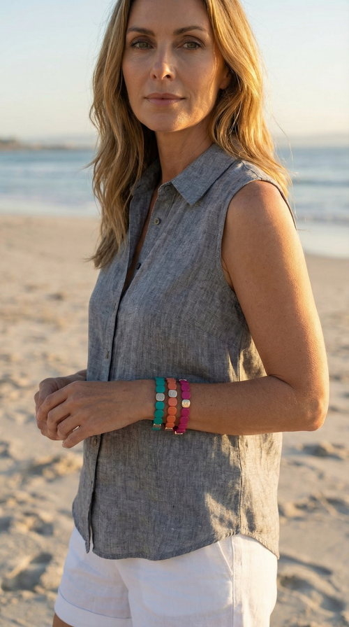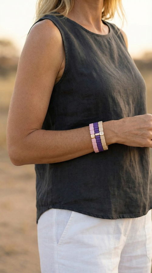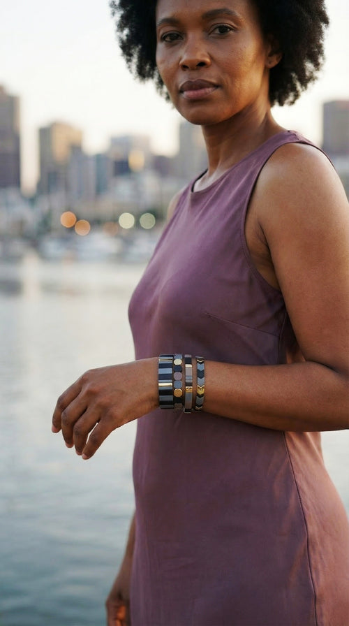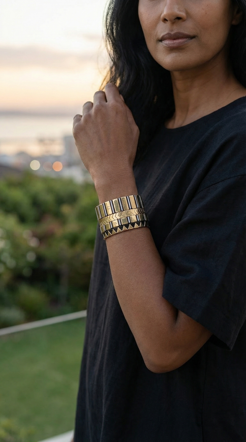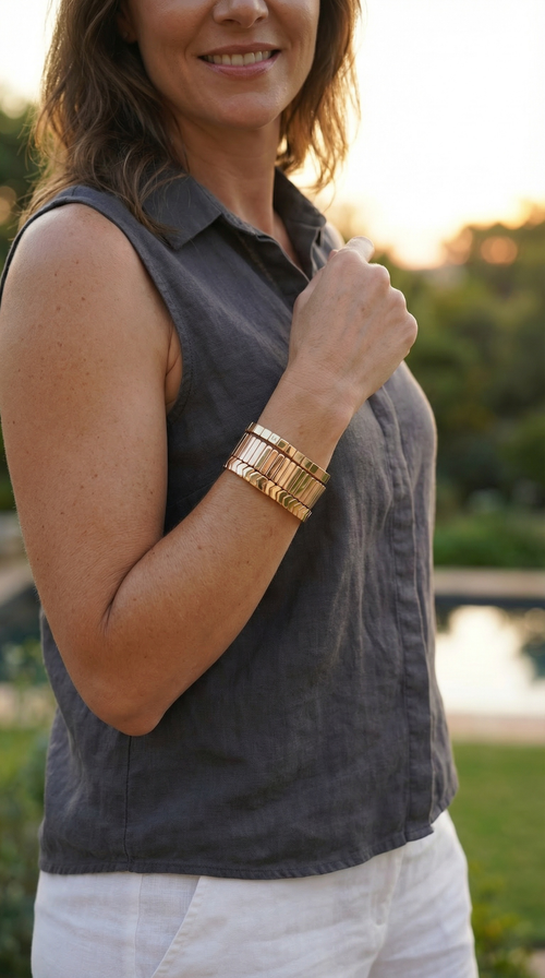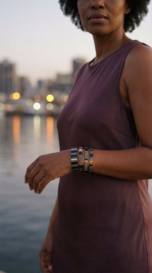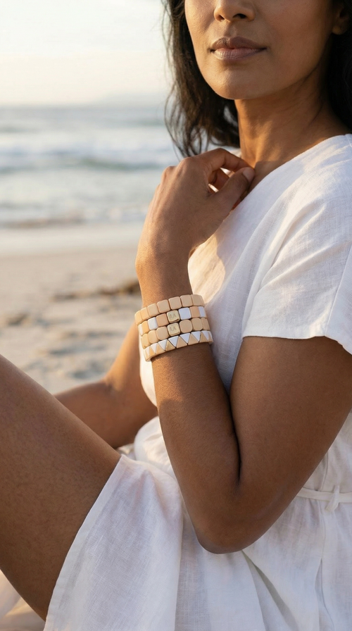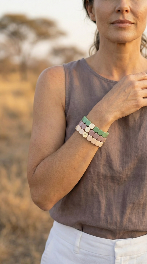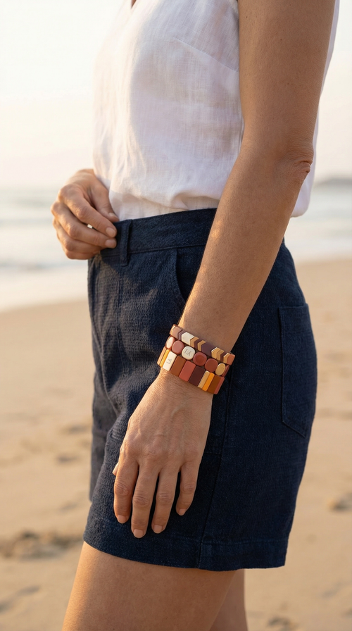 Each piece brings its own tone and texture, but stacking them creates something deeper. Soft colours blend, gold catches the light, and your wrist tells a quiet story of warmth and style.