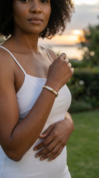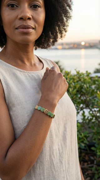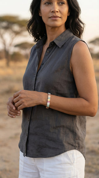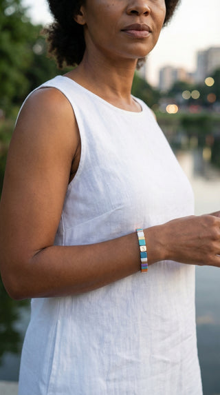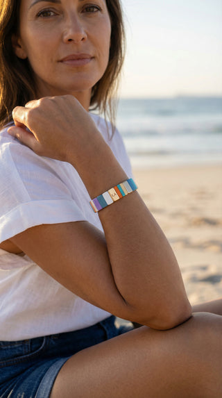 Each piece brings its own tone and texture, but stacking them creates something deeper. Soft colours blend, gold catches the light, and your wrist tells a quiet story of warmth and style.
